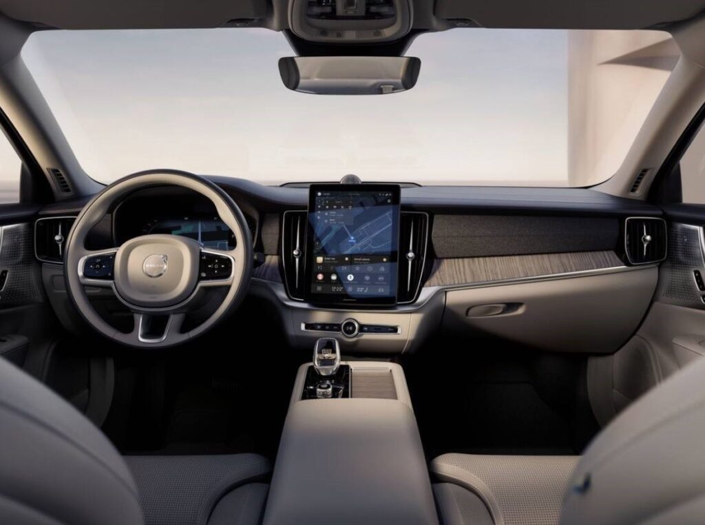 The S90’s interior is designed for indulgence and relaxation, offering convenience features such as ventilated seats, memory function for front seats, and a customizable digital cockpit for driver information.
